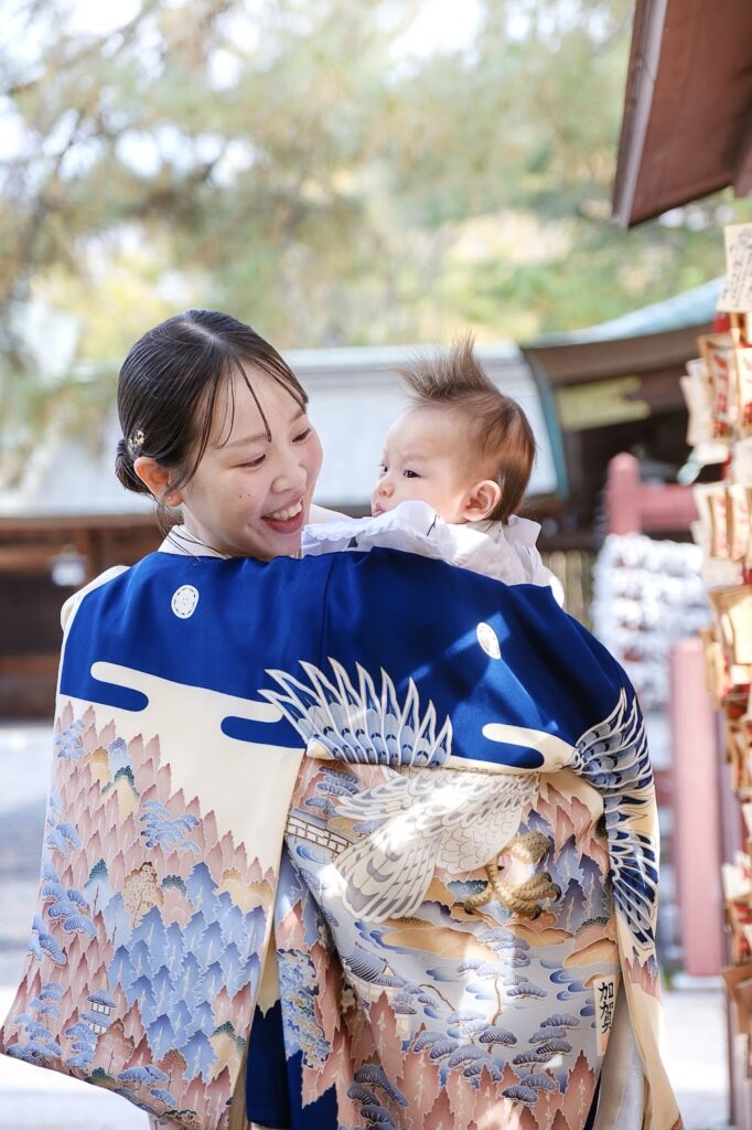 お宮参りは、ママと赤ちゃんが無事ここまで来たことをお祝いする日。