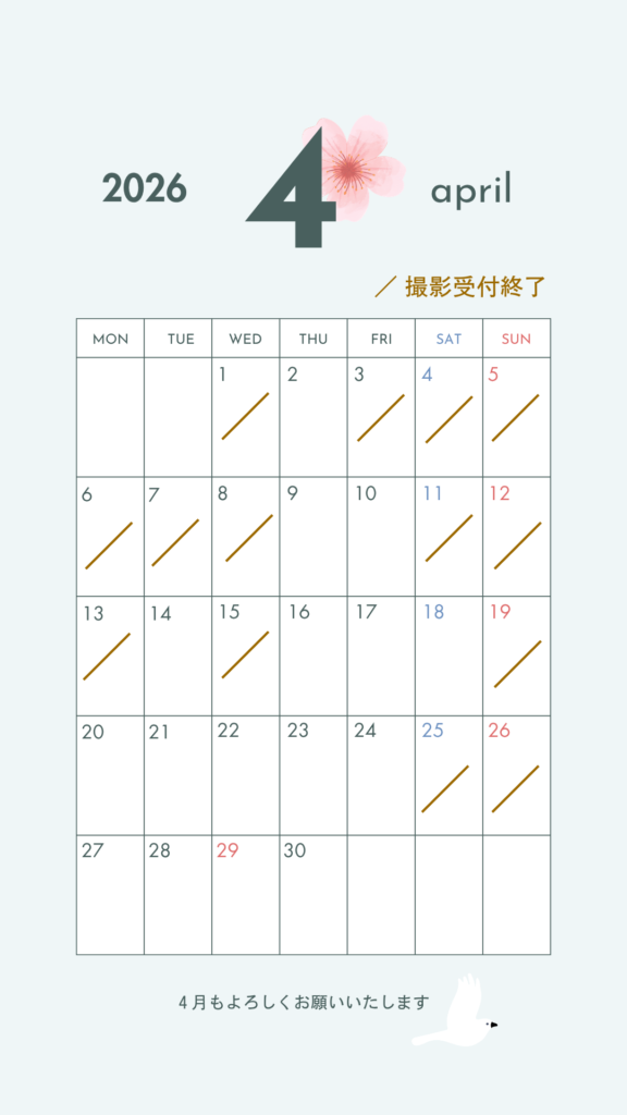 ここで、2026年4月、5月の撮影ご予約状況をお知らせさせてください。